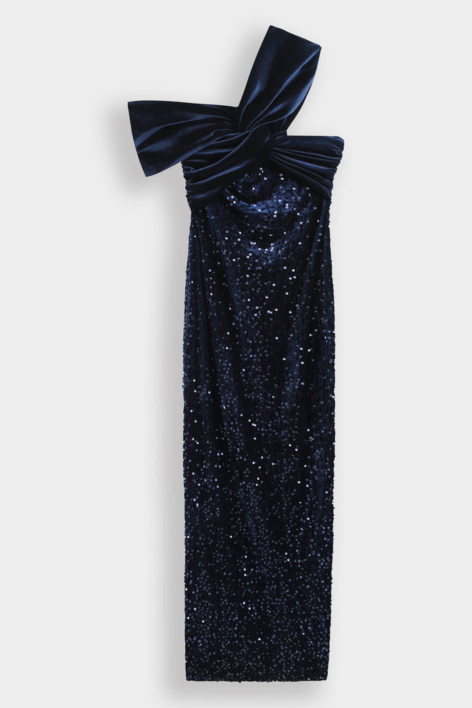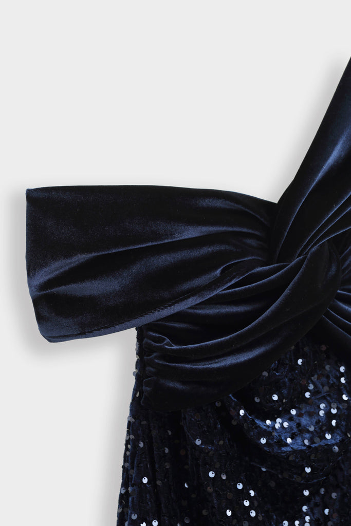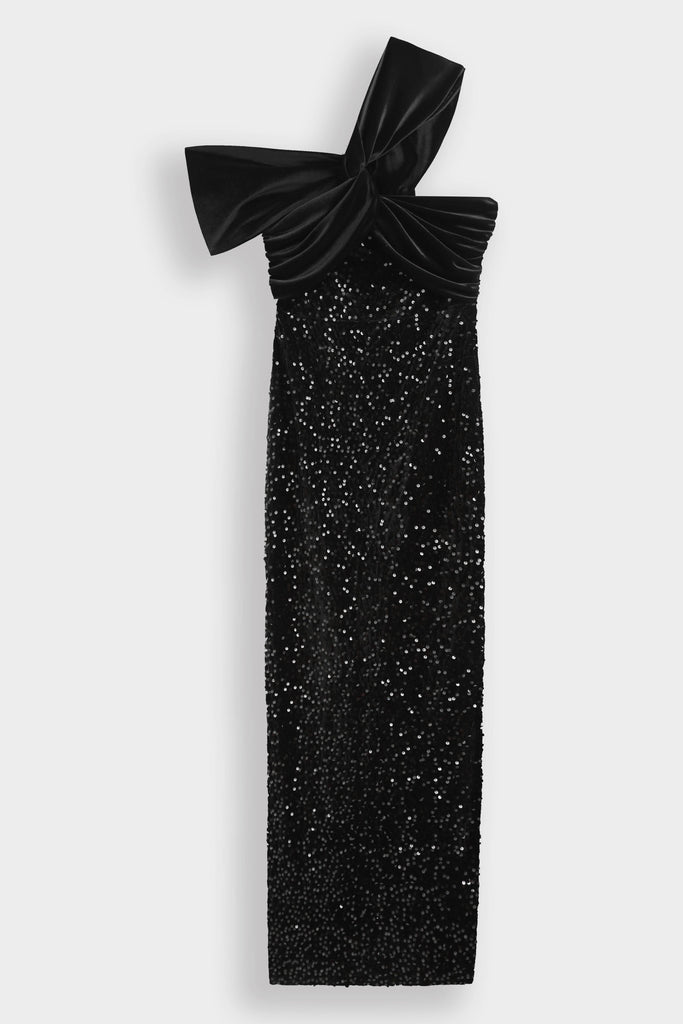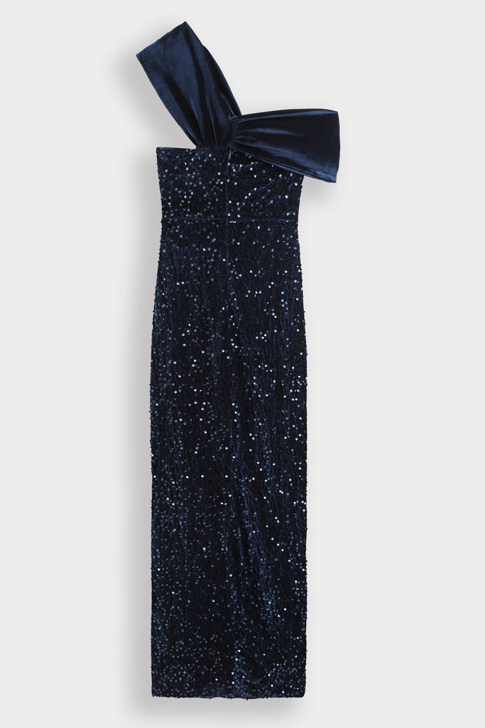 Asymmetric sequin long dress; Composition: 95% polyester, 5% elastane; Size: S, M, L
